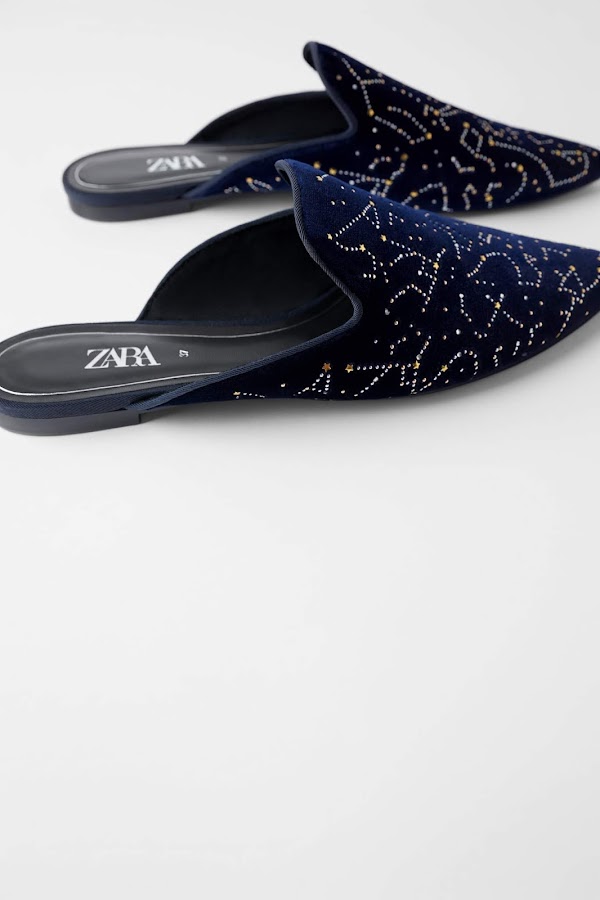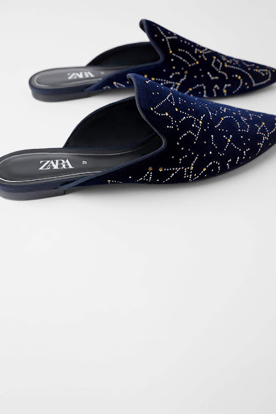 Soy bastante práctica a la hora de vestir, eso ya lo habréis notado, pero de vez en cuando encuentro cositas que me encantan y no puedo evitar desearlas aunque sepa de antemano que las voy a utilizar poco debido a sus características. Pues eso mismo me pasa con estos mules de constelaciones. Me parecen absolutamente preciosos y siento que los necesito, pero soy consciente de que su diseño y su forma abierta van a hacer que me los ponga poco (en Salamanca hace mucho frío).