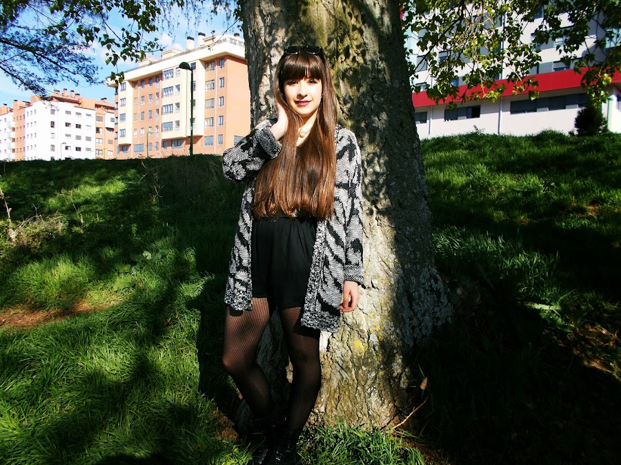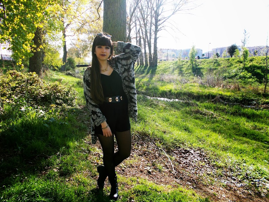 Glasses: Lefties / Cardigan: Stradivarius / Jumpsuit: H&M / Necklace: DIY / Boots: Stradivarius / Belt: Local store