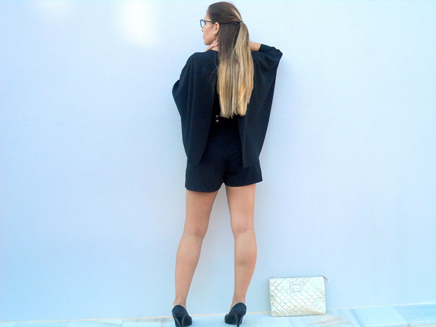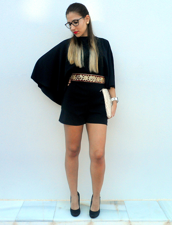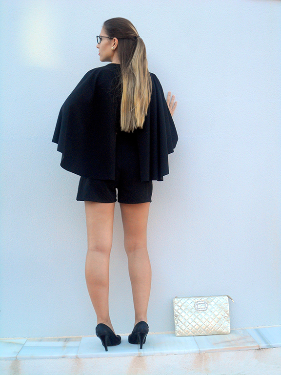 Los jumpsuits siempre nos ayudan a la hora crear looks para cualquier momento o evento y nos sacan de muchos apuros. Por eso, para el look de hoy y aprovechando estos días de calor que hemos tenido, he elegido un mono corto de color negro, con una capa que va de las mangas a la espalda, perfecto para cualquier evento.