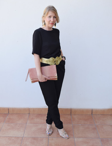 Para darle un toque un tanto diferente opté por un cinturón dorado, uno de mis diy preferidos y que resiste el paso del tiempo y las modas estupendamente. (Puedes ver en este post el paso a paso).