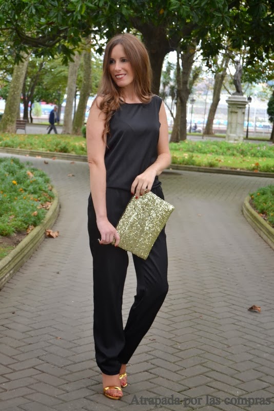 Aprovechando la fecha me apetecía colgar un look especial, así que me decidí por una de mis prendas favoritas, un mono (jumpsuit), pasé de no encontrar ninguno que me gustase o me quedara bien a encontrarlos todos de golpe. El de hoy es un mono negro de VILA de la nueva colección de LA FOLIE, me gustó porque es sencillo pero lleva un detalle de lentejuelas en los hombres que lo sofistica un poco, me parece una prenda muy ponible y porqué no un buen sustituto del clásico LBD. En esta ocasión lo combiné con un aire más de fiesta con unas sandalias doradas y un bolso de mano pero también podría aprovecharse para el día con un zapato o un botín y una chaqueta de punto. Verdad que es ideal?