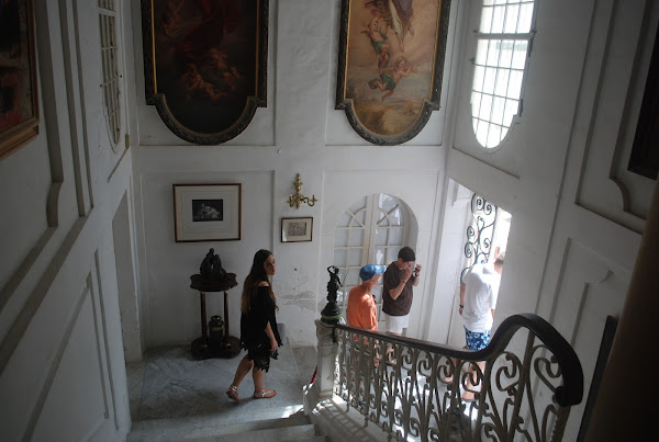 Esperando en el patio de Casa Rocca Piccola a la visita guiada. casi me da un mal por el calor.