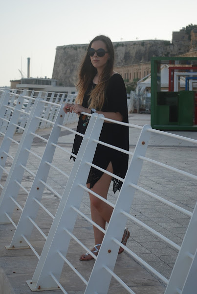Para pasear todo el día sin morirme de calor elegí un kaftán negro (que visteis antes aquí) con sandalias y complementos plateados y bolso negro (solo pude llevarme dos, así que era ese o uno marrón). Como veis sencillo y cómodo. Eso si, las sandalias me destrozaron los pies de tanto caminar.