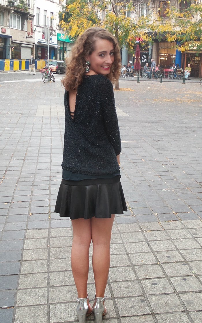 Today I want to show you an outfit that I wore a couple of weekends ago to have a drink with some friends. Navy blue with black: we still hear that they don"t match, but I think they are beautiful and elegant together. To bring some colour, I added some accessories in silver and my new earrings from Zara that I think put the perfect final touch.