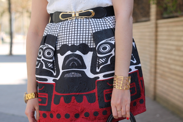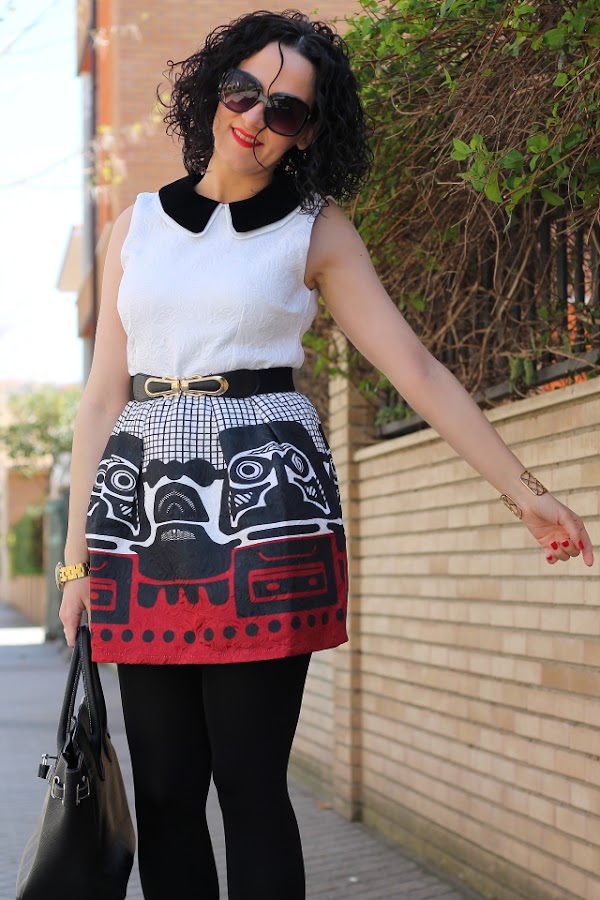 Desde que me llegó este vestido de Persunmall lo tenía guardado en el armario esperando un momento especial para estrenarlo. El sábado pasado por fin me lo puse para ir a la comida familiar que tuvimos para la celebración del cumpleaños de mi abuela. Me decanté por combinarlo con medias, zapatos y bolso en negro dejándole todo el protagonismo. A la hora de los complementos únicamente un sencillo pero precioso brazalete dorado que quedaba genial con el dibujo del vestido.