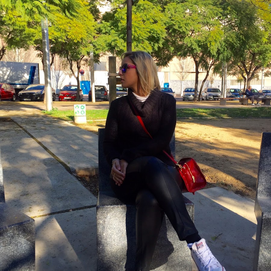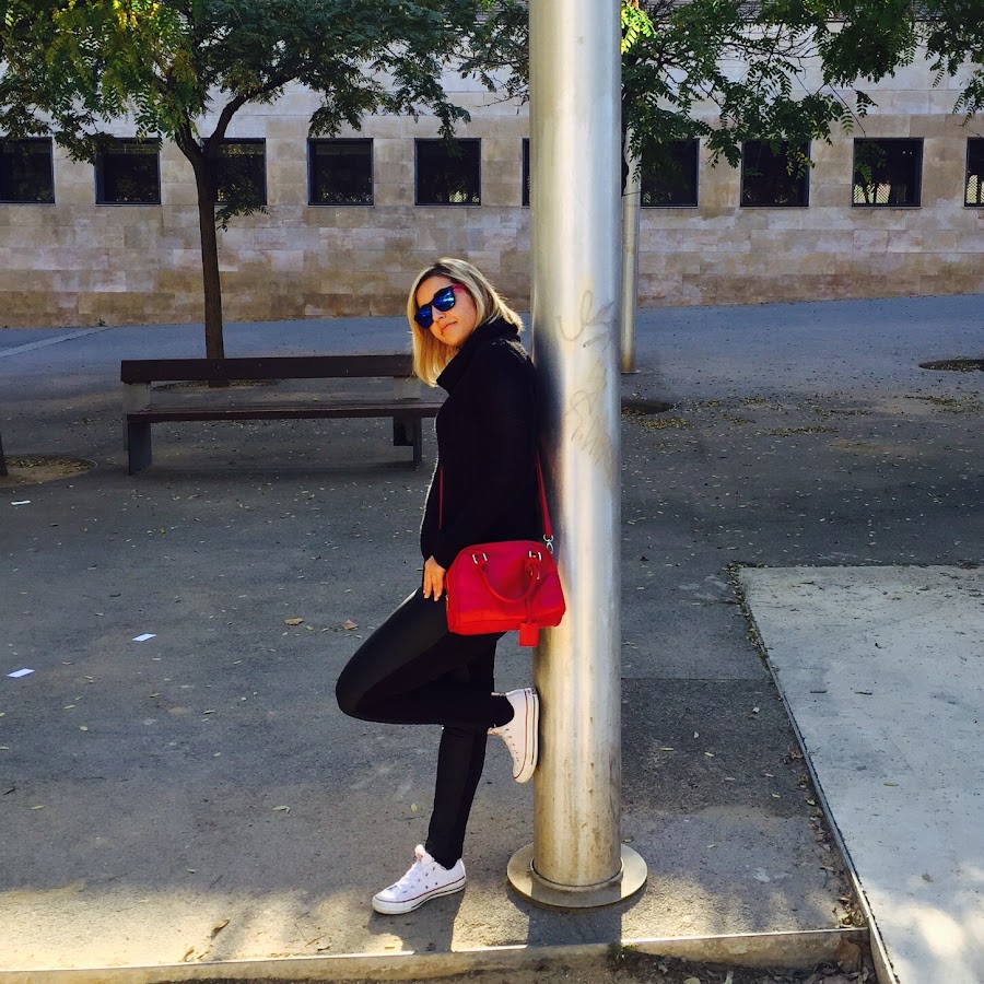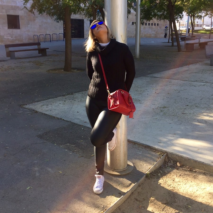 Today I show you a very casual outfit that is perfect to go shopping comfy and warm. I wore my black leggings that mix leather and knit, with a white tee and black sweater. To give a touch of colour to the outfit, I wore a red bag that I didnt wear it a lot of time ago and my converse.