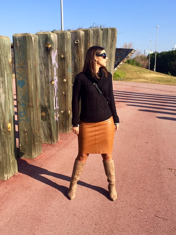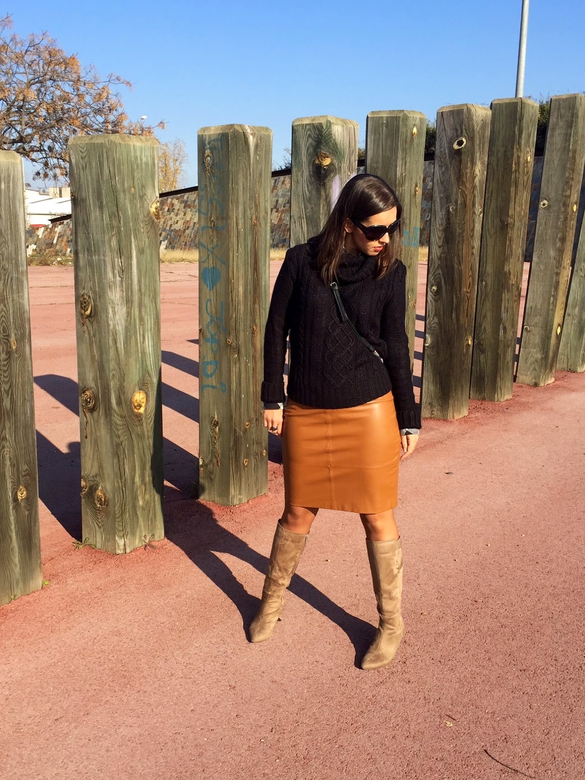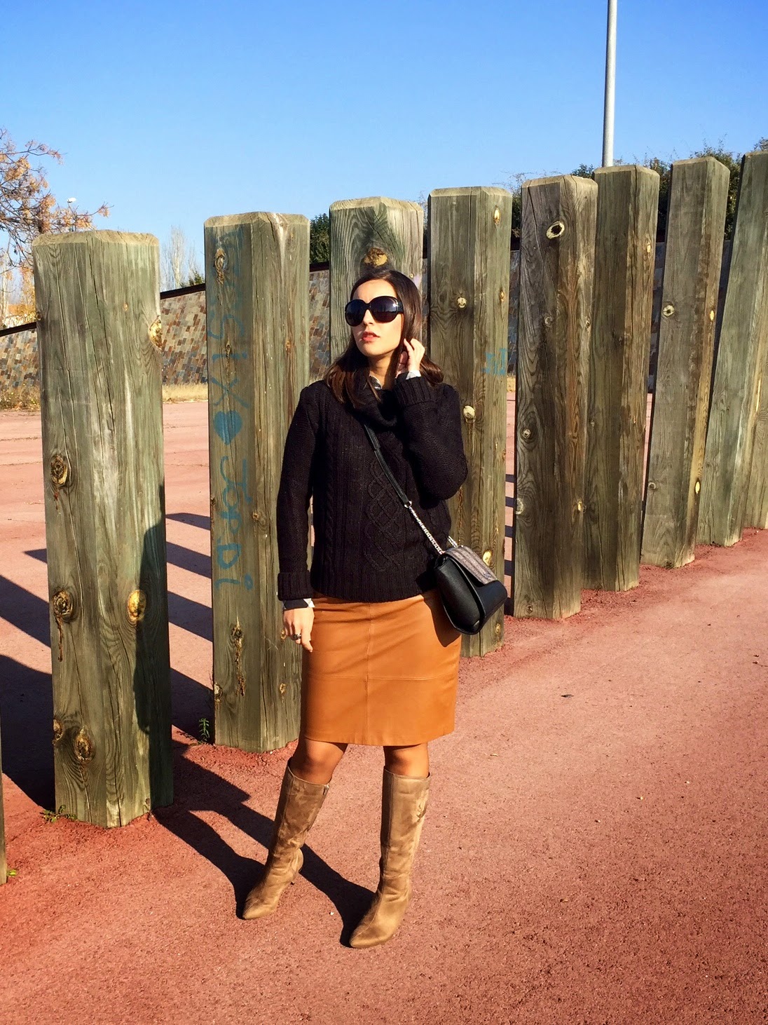 !Buenas noches amores! Empezamos nueva semana que el look que llevo el día de reyes para ir a comer a casa de mi madre. En él llevo un jersey gordo de punto con mi falda de piel de color camel de estilo lady. Los accesorios del look mis botas beige y mi bolsito con estampado de serpiente. Un look sencillo, en él que la falda le da un toque formal al look.