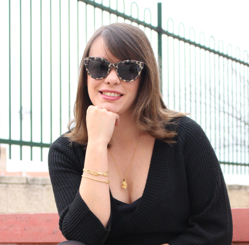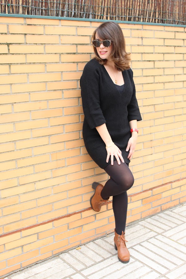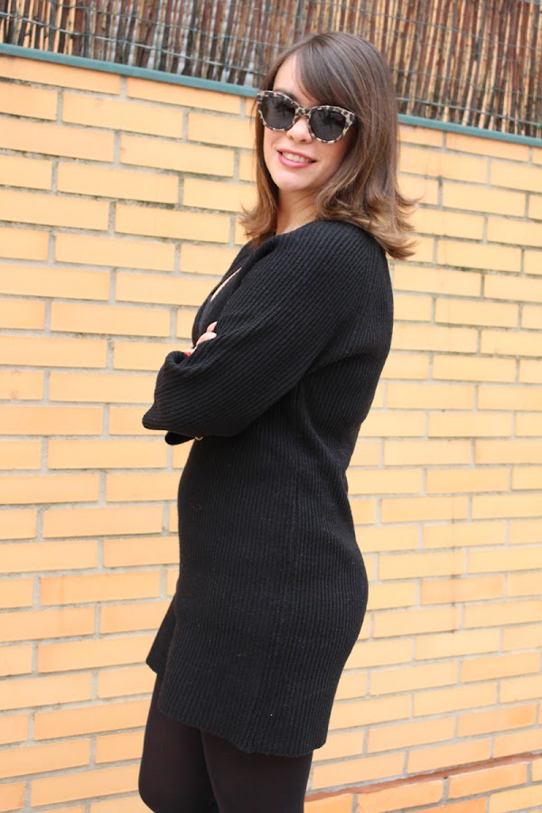 Es un vestido que aunque es gordito como un jersey, al ser de manga 3/4 y tener bastante escote, no abriga mucho. Si es necesario abrigo me he puesto el naranja, que le da mucho color y gafas de sol bien llamativas, ¡que no va a ser todo negro!