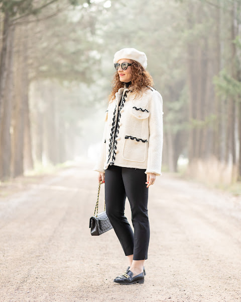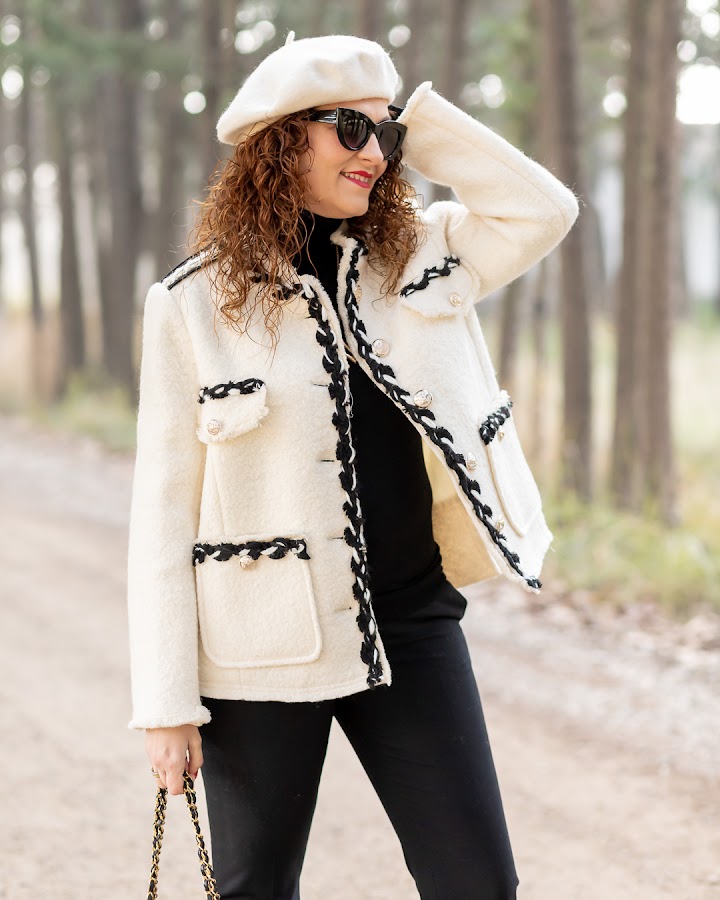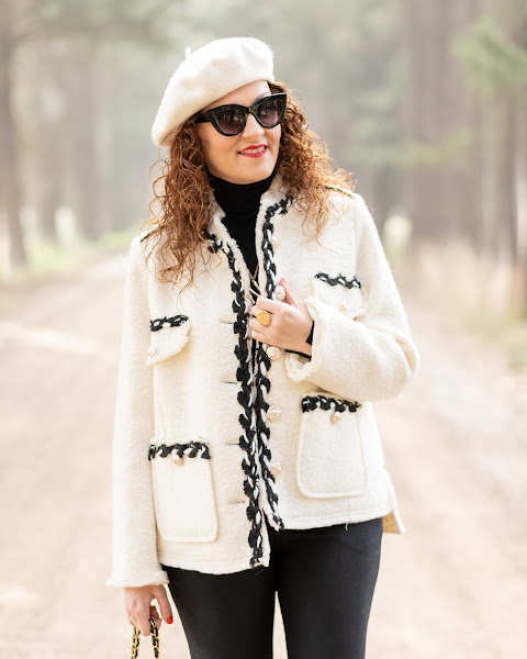 El look de hoy es de los que monto a partir de una prenda, y esta vez ha sido la maravillosa chaqueta de estilo Chanel que llevo. Se la vi a Lovely Pepa y fui directa a comprarla porque me enamoré de ella.