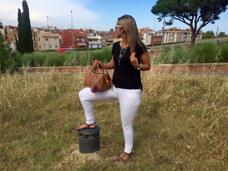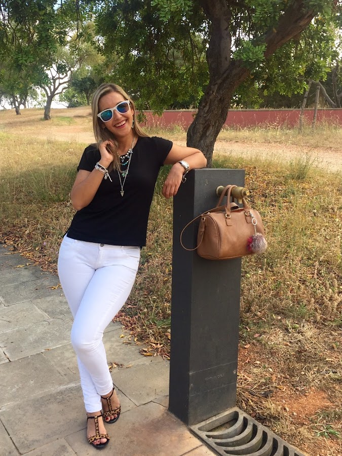 ¡Buenas noches bombones! Nueva semana a la vista, después de un finde movidito, ya que han sido las fiestas de mi pueblo y no he parado. Hoy os enseño un look muy básico y que se siempre es un buen recurso cuando no sabes que ponerte. En el look de hoy llevo pantalones blancos con una camiseta negra básica y sandalias con estampado de leopardo. En estos looks tan básicos es imprescindible tirar de complementos y por eso añadí mi nuevo collar de Stradivarius.