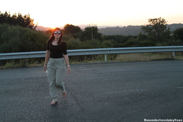 Today I show a look in black and white tones in which I show you my new cow-print pants and baggy, super nice and cool and comfortable for hot days. The combined it with basic shirt in black, heart necklace, sandals glitter and gold purse.