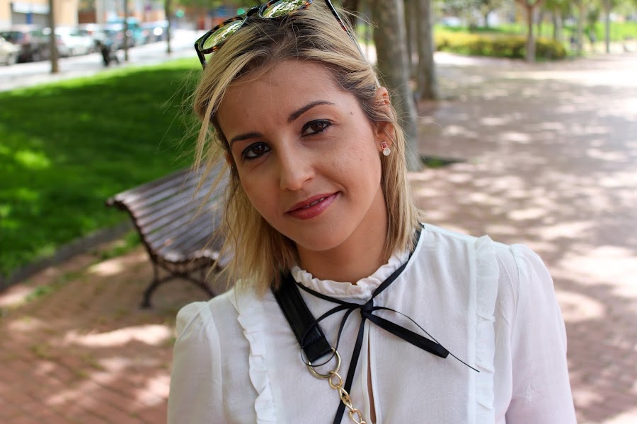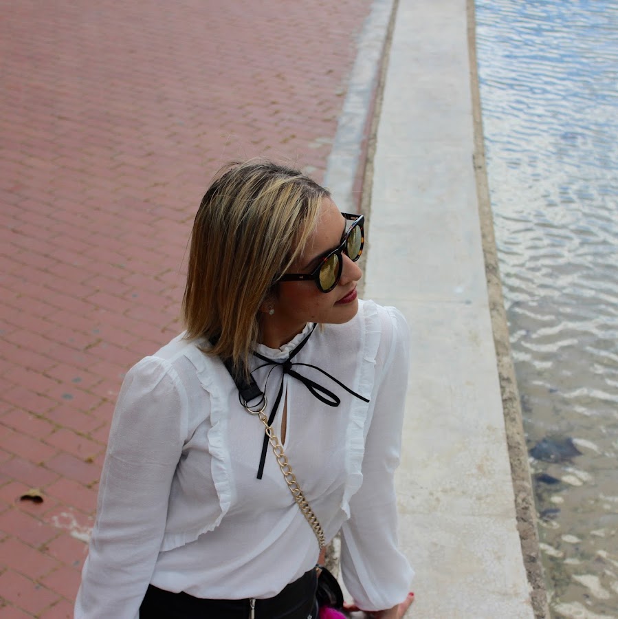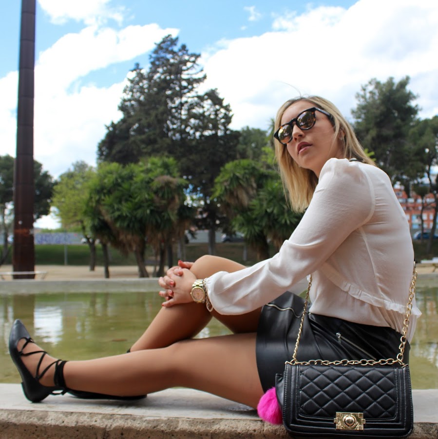 Hoy os enseño un look en blanco y negro, que es una combinación que siempre es un acierto. En el look de hoy, llevo mi nueva camisa blanca con lazo negro que seguro que más de una la tendréis en vuestro armario y la combiné con una falda negra de piel, mis bailarinas atadas en negro y mi bolso negro estilo Chanel. Un look femenino y sencillo que siempre es un acierto.