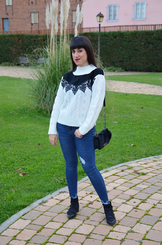 Hoy os traigo un nuevo look con una de las prendas de Dresslily que se ha convertido en favorita de esta estación y es este jersey que combina los tonos blanco y negro con el detalle de la puntilla en la zona del pecho, que le da ese toque bonito y vistoso a la prenda.