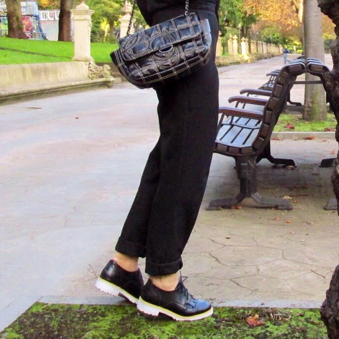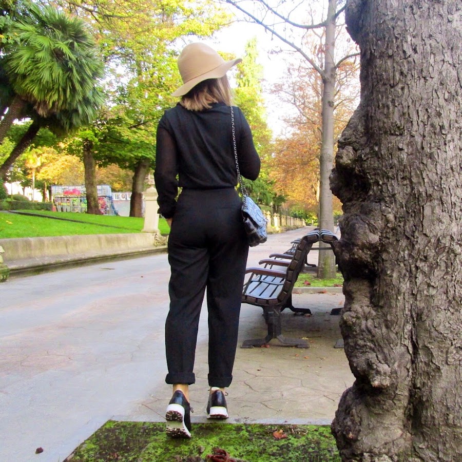 Opté por un pantalón de vestir de cintura alta para alargar las piernas, ya que siendo bajita el zapato plano tiende a acortarnos aún mas las piernas. Estoy deseando ponerlos con un vestido o falda en un look totalmente contrario a éste.¿Os habeis lanzado ya con éste tipo de zapato?