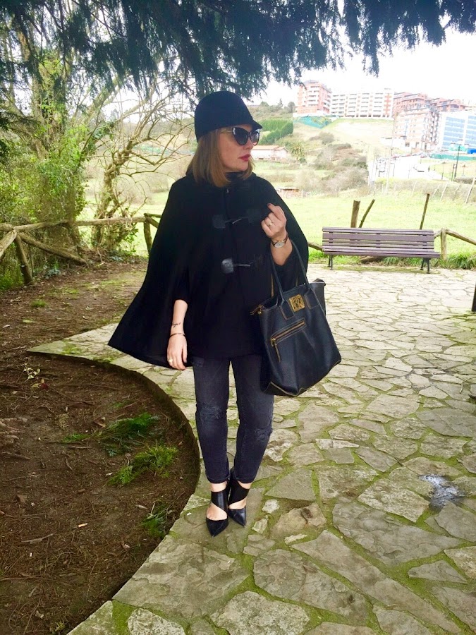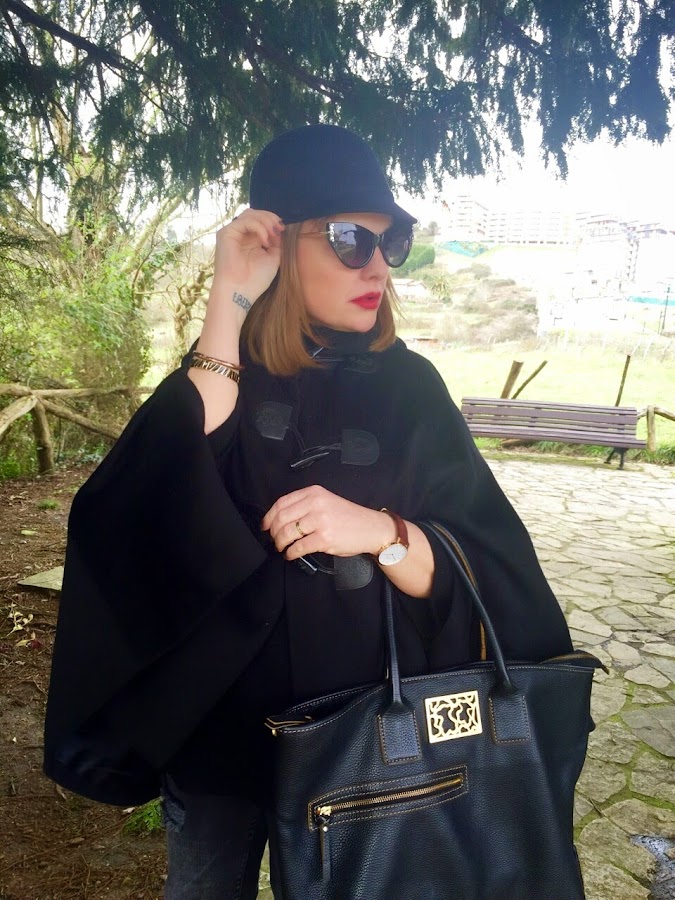 Aunque ya no abunde tanto dentro de mi armario, el color negro me sigue pareciendo uno de los más elegantes y un acierto seguro. Además era el color perfecto para estrenar mis nuevas gafas cat-eye. Nunca había utilizado ningunas de esta forma pero tengo que reconocer que me encantan, estilizan los rasgos de la cara y dan un aspecto "misterioso" ;)
