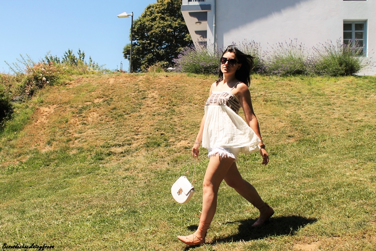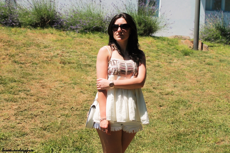 Ive been shirt yoke white beaded chest, flare short shorts, lace-up color and bag in white that Im giving much use by the comfortable and practical that is.
