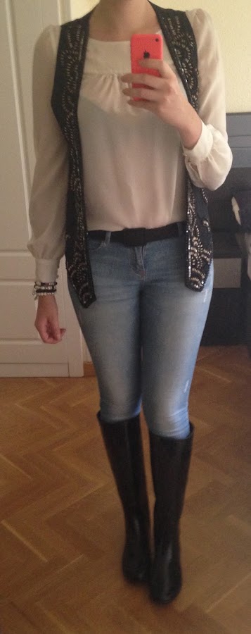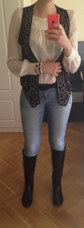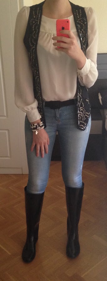 Las combino con vaqueros claros, blusa blanca y chaleco negro con pedrería. El chaleco en este look lo considero la prenda clave que le da el toque estiloso aún siendo un conjunto para diario (como yo suelo decir, cómodo pero arreglado).