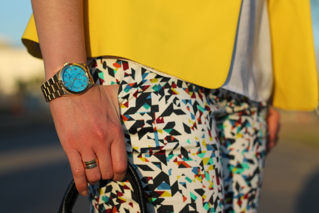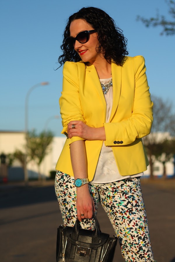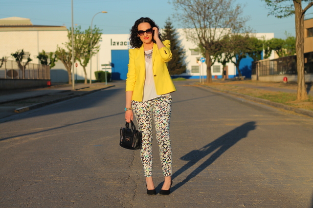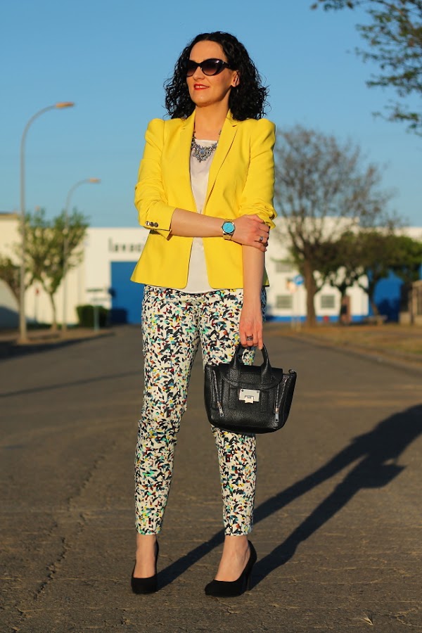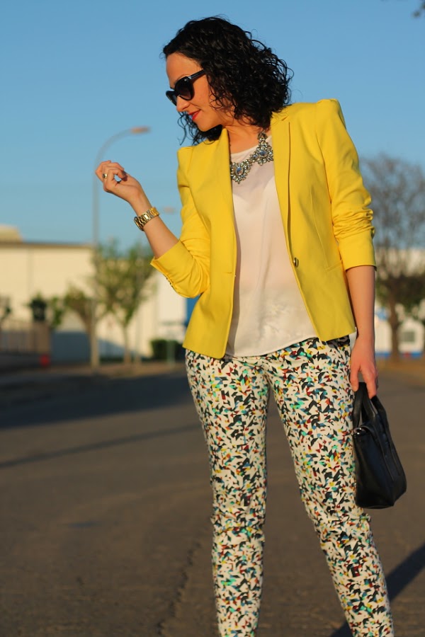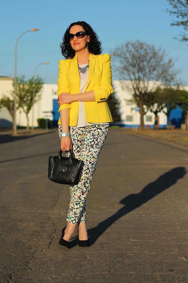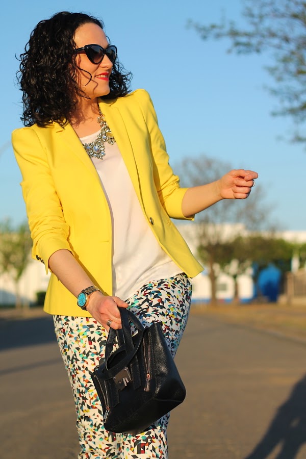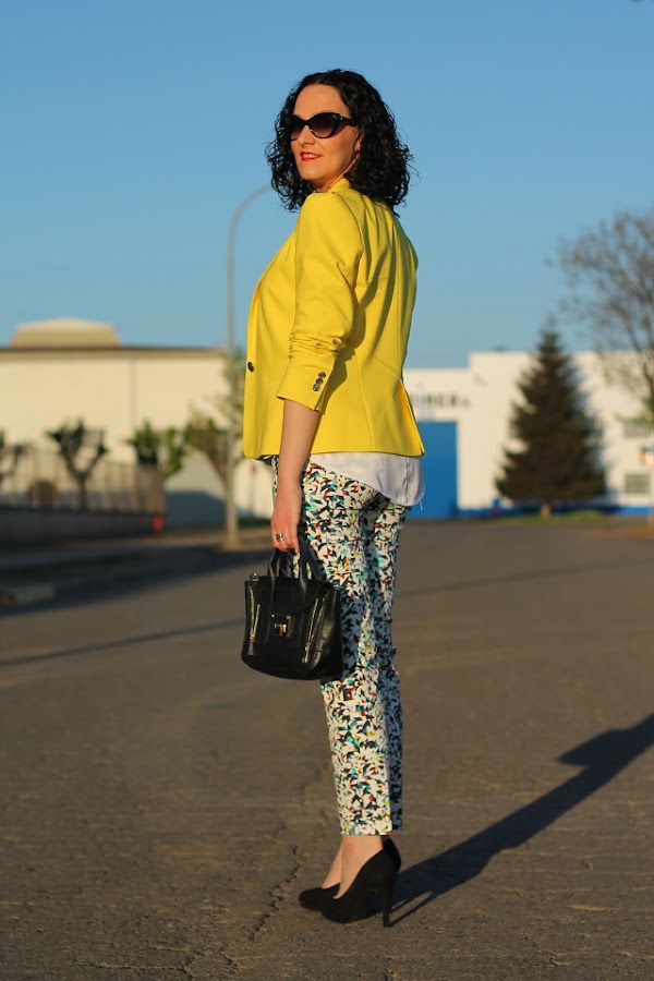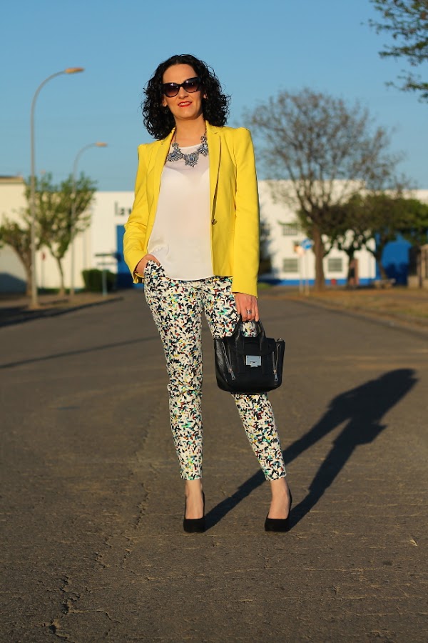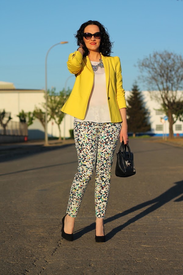 Si, ya lo se, otra vez con la blazer amarilla vais a decirme, pero es que la verdad es que me cuesta no ponérmela porque queda bien prácticamente con todo. Un ejemplo son estos pantalones capri, en su print llevan varios tonos pero la combinación con el amarillo es una de las posibilidades que más me gusta. Si es que lo reconozco, aun teniendo un armario a punto de reventar cuando me da por algo me da y fuerte. Pero realmente no me importa llevarla una y otra vez porque una de las cosas que más me gusta de la moda es que con una misma prenda puedes crear una gran cantidad de looks muy diferentes entre ellos.