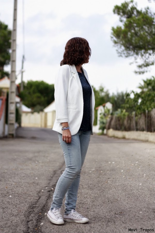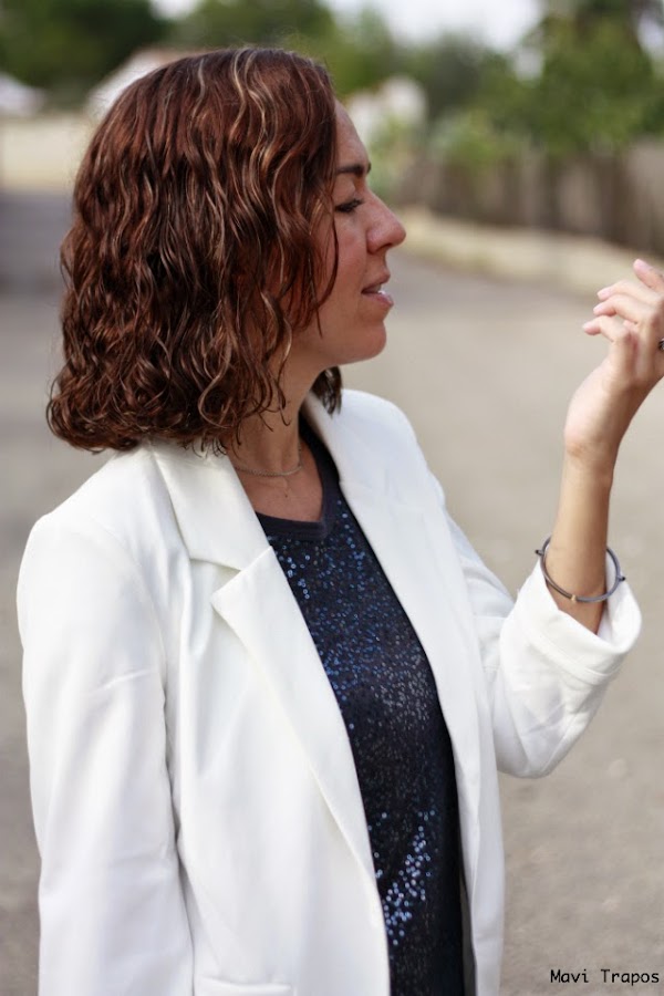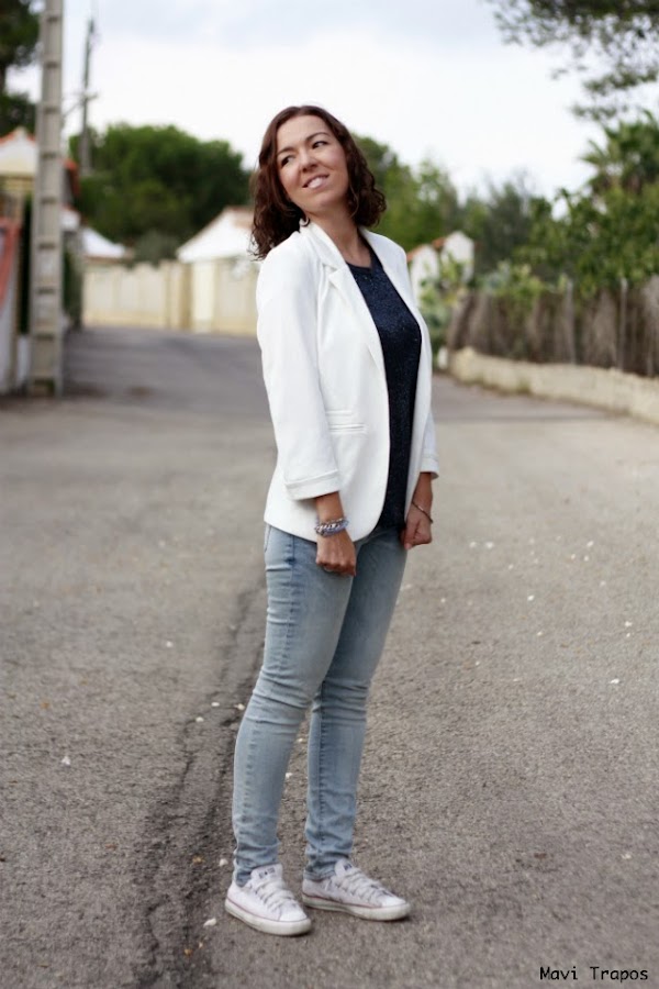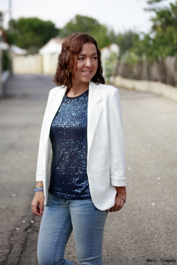 Este tipo de looks como el que hoy os muestro, también es muy habitual en mi día a día: cómodo para seguir mi ritmo pero con el toque de la camiseta de lentejuelas y la blazer blanca (ya os comenté que era casi una necesidad vital) que siempre aporta un toque refinado y formal a cualquier look.