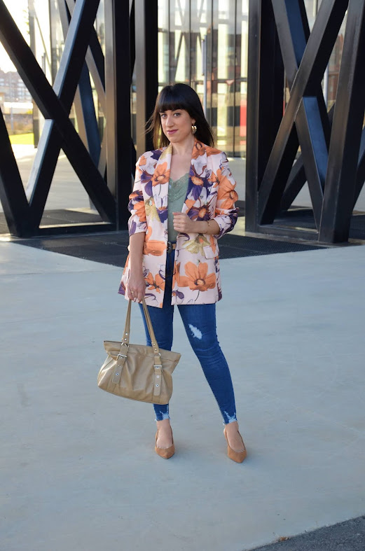 Es una de esas prendas que no deja a nadie indiferente, o la amas o la odias. Obviamente a mi me encanta el estampado de flores en tonos anaranjados, verdes y morados la convierte en una pieza ideal para el otoño.