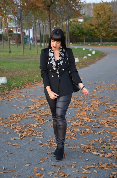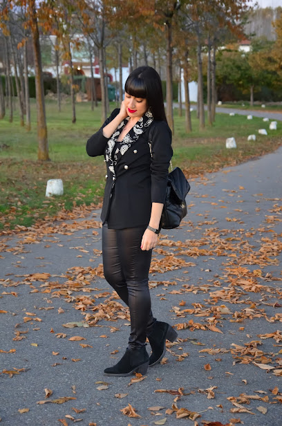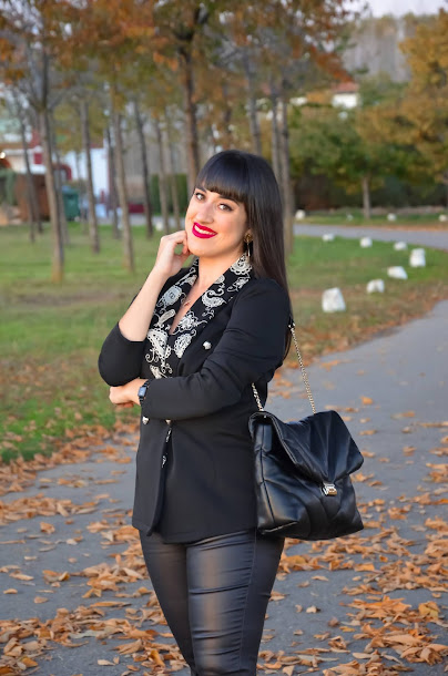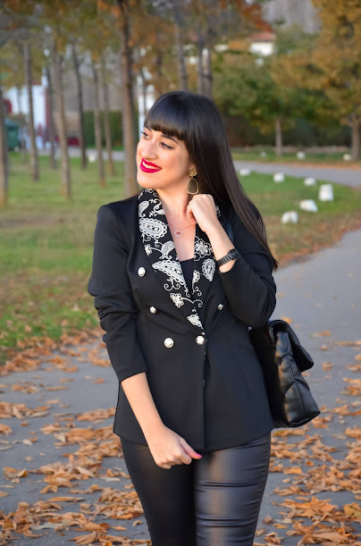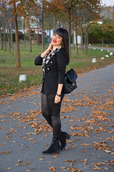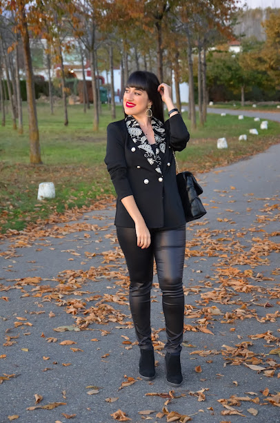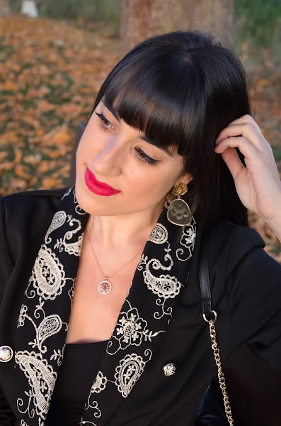 Una de las prendas de la colección otoño- invierno que más me ha gustado es este blazer. El negro es siempre sinónimo de elegancia pero si además le añadimos unas solapas bordadas con motivos paisley y botones dorados... ya tenemos una prenda muy especial .