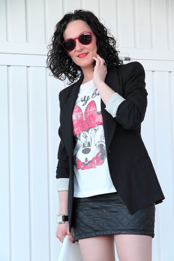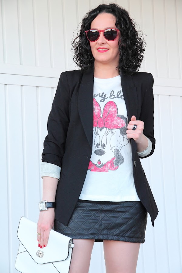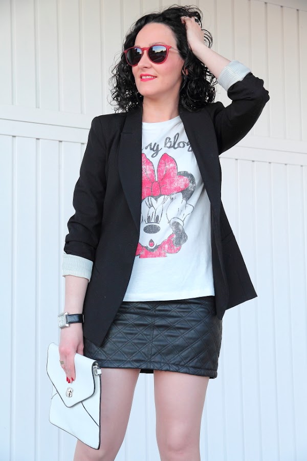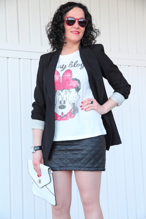 Blazer: Zara. Camiseta: Primark. Falda: Sheinside.
