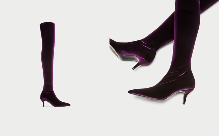 COMBINA EL VESTIDO-BLAZER CON BOTAS OVER THE KNEE EN COLOR EN CONTRASTE Y TERCIOPELO
