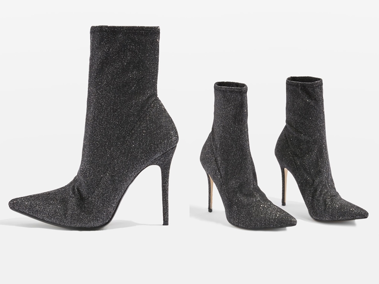 PARA LA NOCHE DE FIN DE AÑO LUCE EL VESTIDO-BLAZER CON BOTINES CALCETÍN EN GLITTER