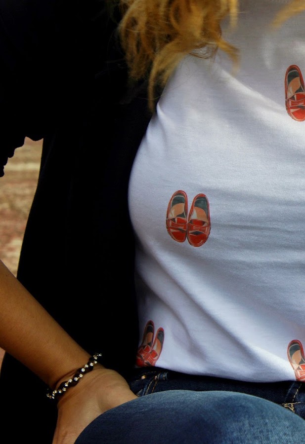 El print de esta colección son unos mocasines y son ideales, la vi por primera vez cuando aún no estaba a la venta en la pasarela de Gran Canaria Moda Cálida al chico del diseñador grancanario, llevaba la camiseta y unos pantalones con el mismo print y me dejó con la boca abierta me enamoró por completo su total look arcadinos y yo llevaba en contra puesta un total look arcadinas jajaja