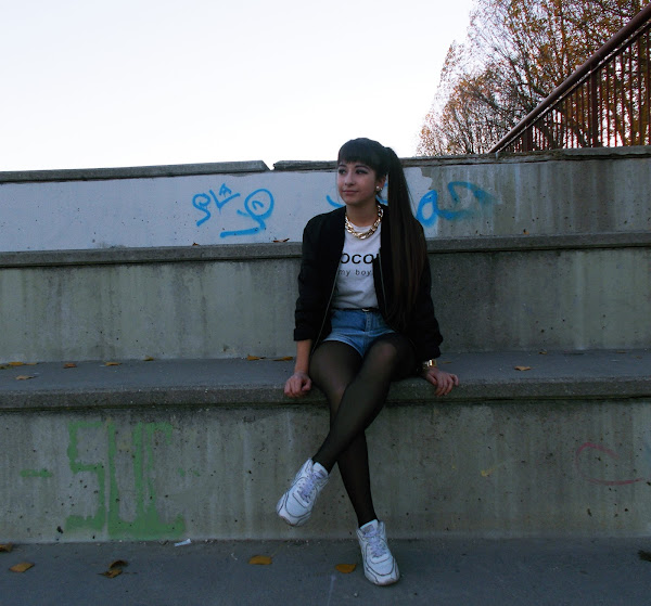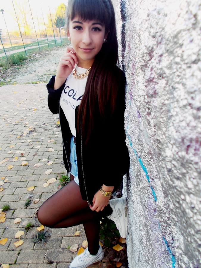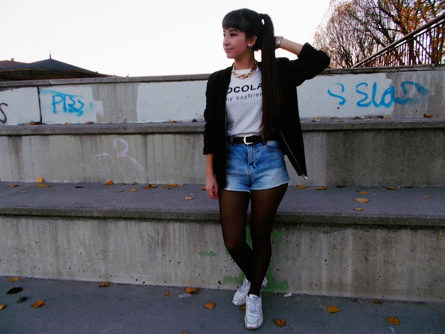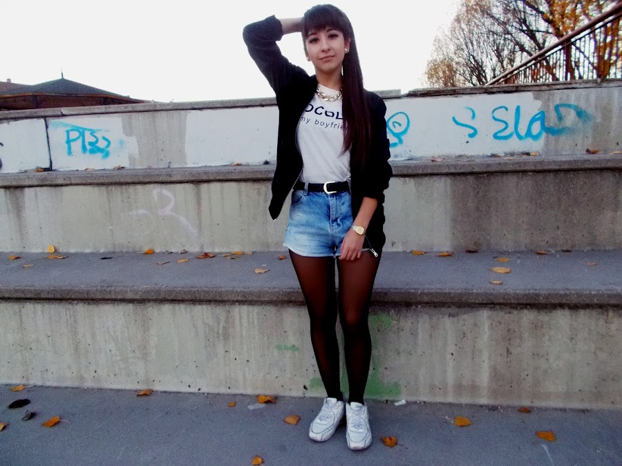 Short: Zara // T-shirt: Stradivarius // Jacket: Stradivarius // Velt: Vintage // Necklace: Ericdress // Shoes: Airmax90