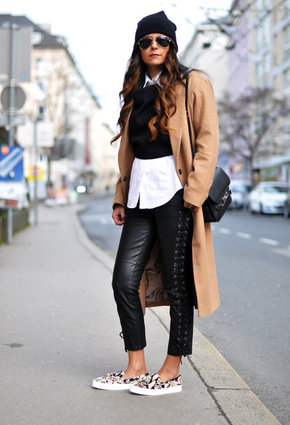 Is really very chic trend between bloggers.The pants could be all leather or a blend[like the one i have]they look great!