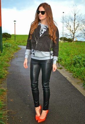 A la verdad que es un trend muy chic entre las bloggers.Ya sea pantalones de cuero entero o mezclados[como las que tengo]se ve sensacional!