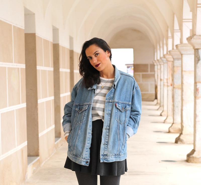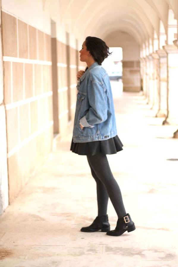 Respecto a mi look, combino una falda comodísima con sudadera, y una clásica cazadora Levis vintage, que me he quedado de mi tienda ;)