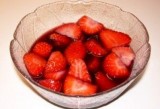 1/2 kg de fresas 3 cucharadas de miel 1 vaso de vino blanco dulce Disolvemos la miel en el vino blanco, y lo pasamos a una ensaladera. Añadimos el agua. Lavamos y retiramos el rabito de las fresas, las cortamos en gajos y las añadimos a la fuente. Tapamos con papel de plástico de cocina y las dejamos macerar durante cuatro horas en la nevera. En el momento de servir adornamos con hojas de menta fresca.
