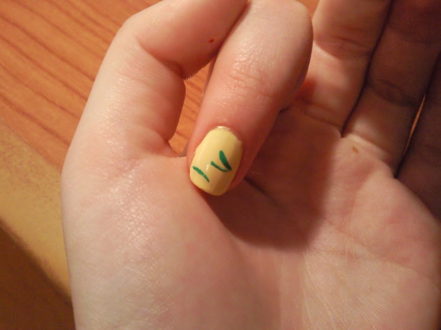 I need yellow (cream or vanilla shade), red, white and green polish, a dooting tool and a thin brush.