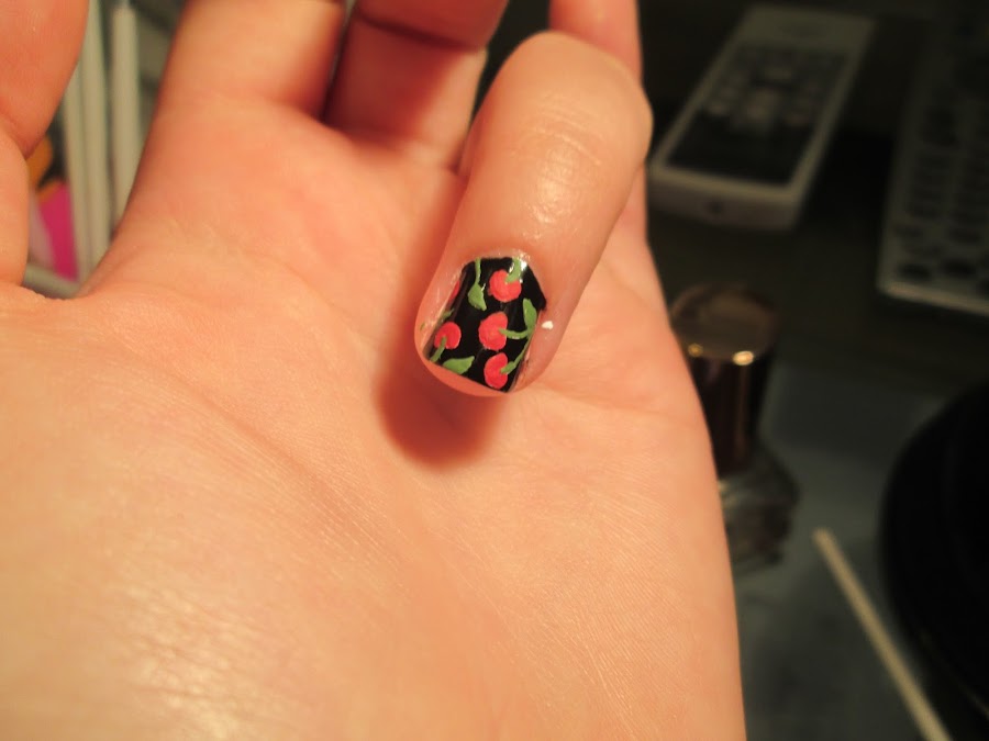 Para darle un poco más de dimensión, puedes mezclar algo de rojo y blanco y hacer un tono un poco más claro para dibujarle "brillo" a las cerezas.