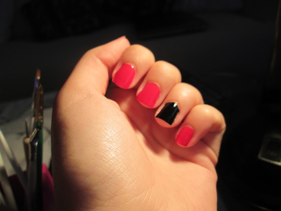 Comienza pintando todas las uñas en rojo, excepto el dedo anular, que irá en negro.