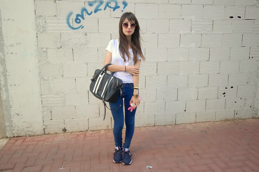 Pero vamos a lo que interesa ¿no? El look de hoy es sencillo, pero me gusta la combinación de las gafas redondas con new balance. Además, esa camiseta básica con los dos nudos a los lados queda muy bien. ¿Os gusta? Las gafas, que me compré en mi último viaje a Madrid en Topshop, creo que les voy a dar mucho uso este verano porque según he visto están de plena moda. Muchas gracias por los comentarios y las visitas, que cada vez son más. ¡Un beso!