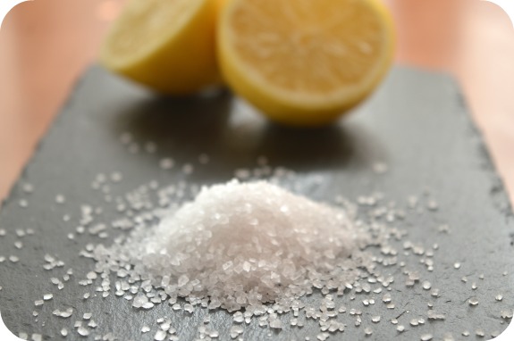 Y para hacértelo simplemente has de coger un par de pellizquitos de sal, que sea de grano medio ya que si es muy fina no tendrá suficiente fuerza para eliminar las impurezas pero si por el contrario es muy gruesa dañaremos en exceso la piel, y echarle unas gotas del zumo del limón. Con humedecer la sal es suficiente ;)