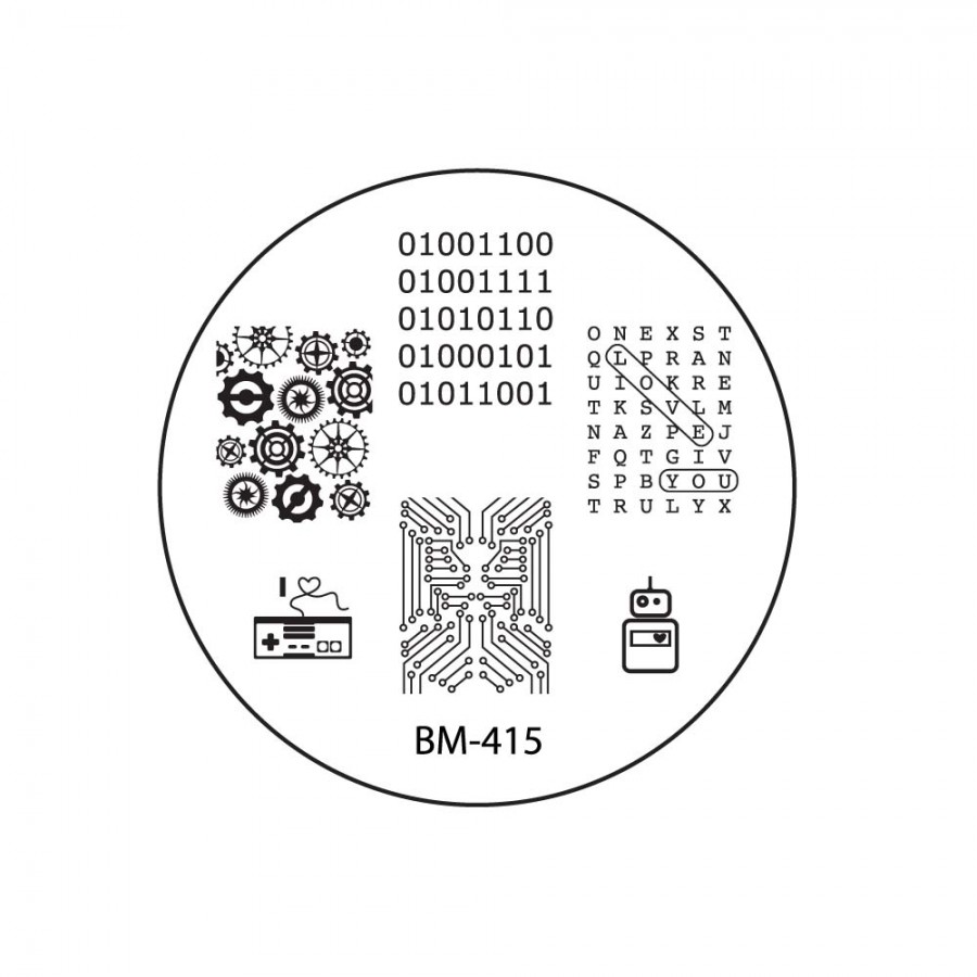 La verdad que es todo un alivio volver al estampado como base para la decoración, debo decir que es mi "comfort zone" y soy feliz ahí adentro. Como concesión les dejo la uña del anular donde dibujé con fibra el sombrero y use las herramientas de dotting o punteros para dibujar el ojo. La placa es la 415 del set CYO de Bundle Monster. Y sí, cualquier día de estos tengo pendiente una mani con esos 0"s y 1"s.
