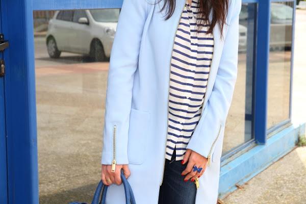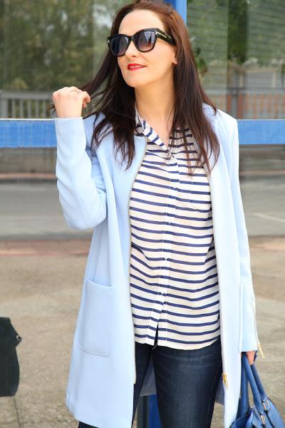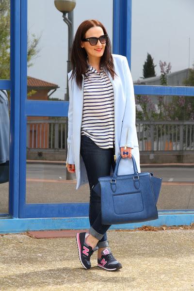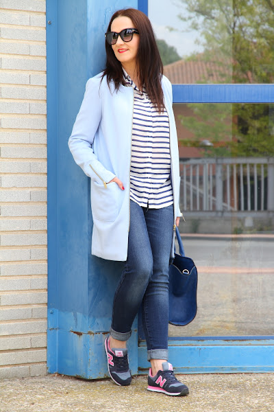 La verdad es que cuando me compré este abrigo de entretiempo no pensé que lo llevaría tanto como lo estoy haciendo. Además de que me gusta muchísimo, es genial porque es muy combinable y se adapta perfectamente en todo tipo de looks. Hace unos días aquí os lo enseñe es un estilismo más arreglado que el de hoy. Si aquel outfit me gustó, el look casualque he conseguido hoy combinándolo con la camisa de rayas, los jeans pitillos y las New Balance no se queda atrás.