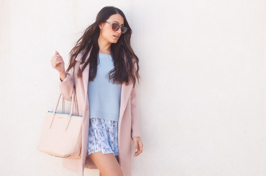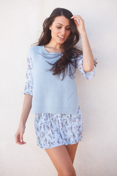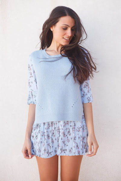 Hoy os dejo unas fotos con mi nuevo vestido azul cielo con estampado floral y chaleco de lana de FASHION 71.