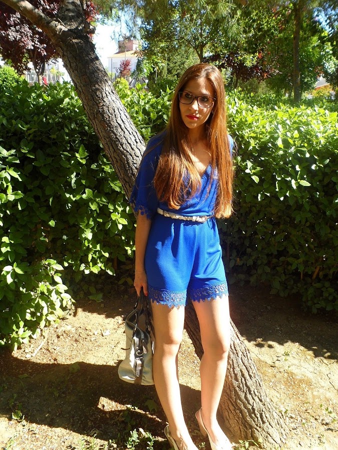 En esta ocasión he decidido usar un precioso mono azul klein con acabado de puntilla, dando un toque especial y delicado al look. Me encanta porque vale tanto para el día como para la noche y es súper cómodo.