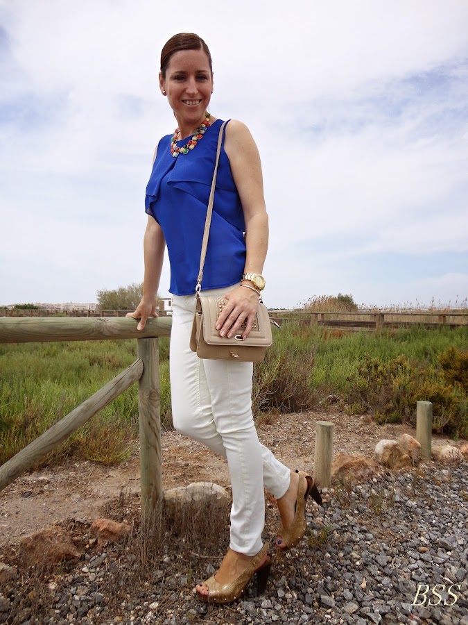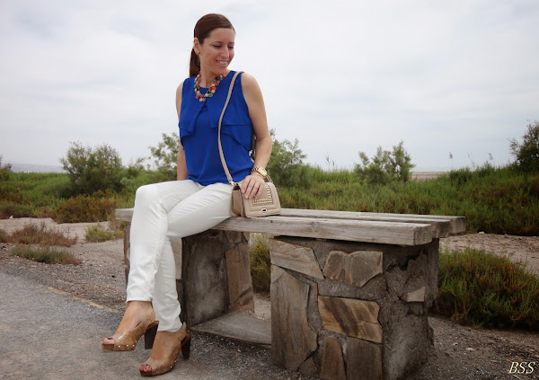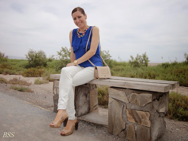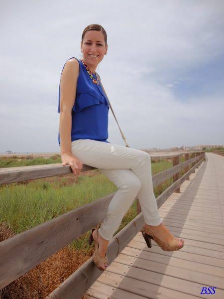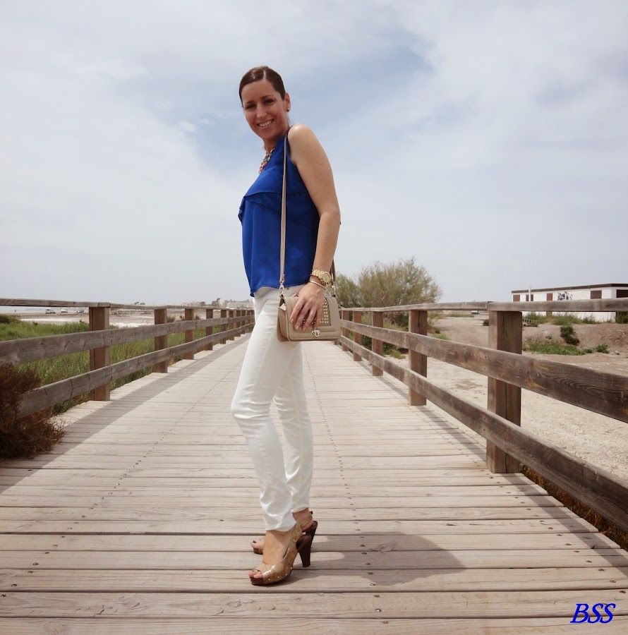Hace algunas semanas ya de este look y aunque ya lo suelo combinar con shorts, este top azul klein de Rosapalo me parece perfecto para cualquier ocasión.