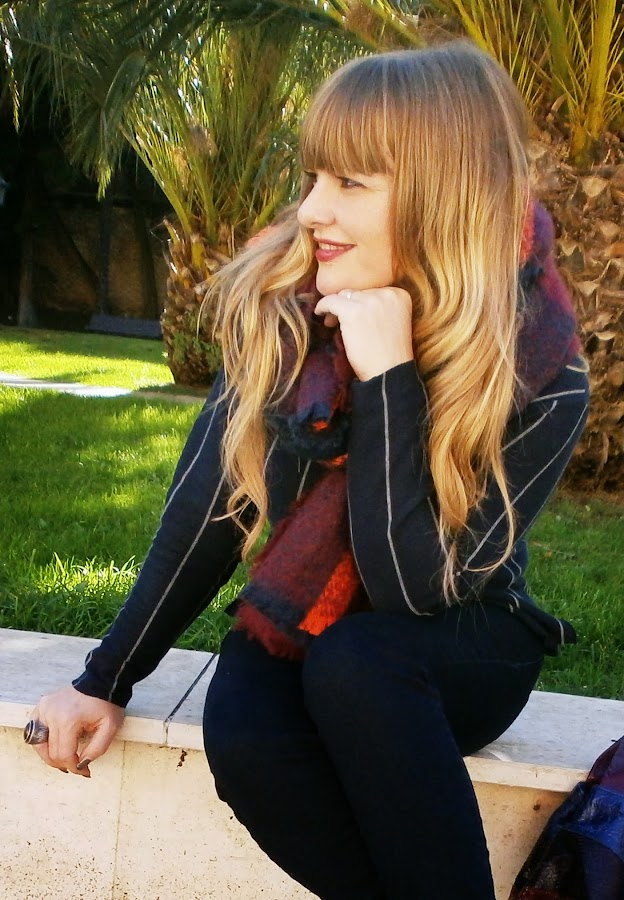 Para darle un toque diferente le he añadido la maxi bufanda que ya me habeis visto en otras ocasiones a modo de chal. Al ser tan grande tiene muchas posibilidades y es muy calentita.