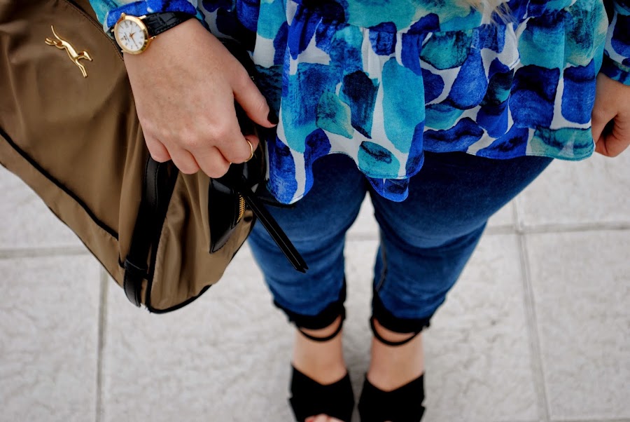 The star of today"s look is undoubtedly the blouse, I love her colors and patters. This time mixed it with simple garments but you can also create elegant looks with it (we"ll post up outfits for events in the next days). I hope you like it, girls!