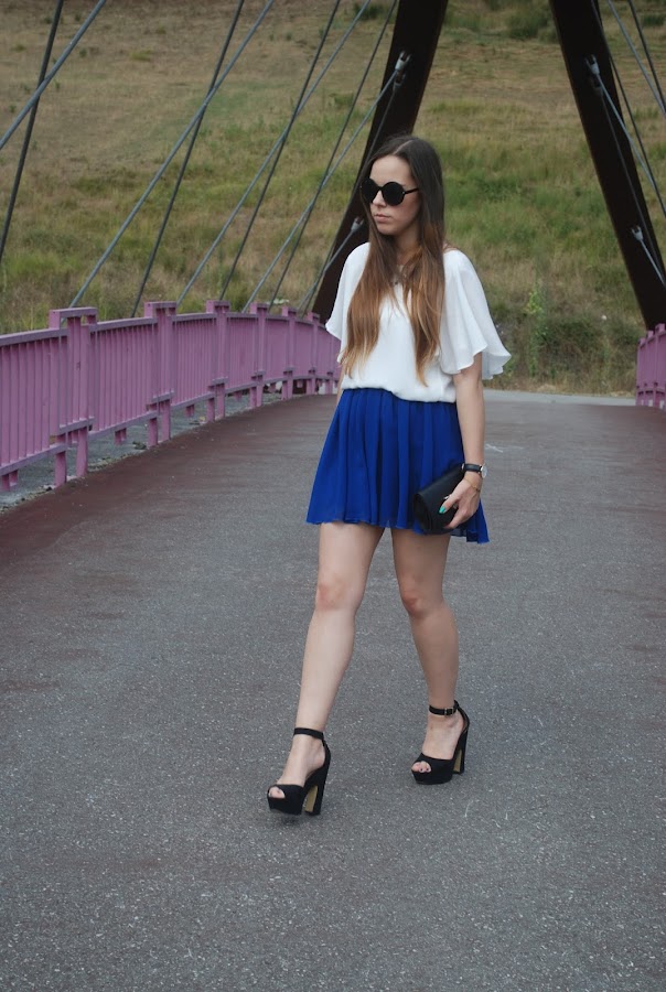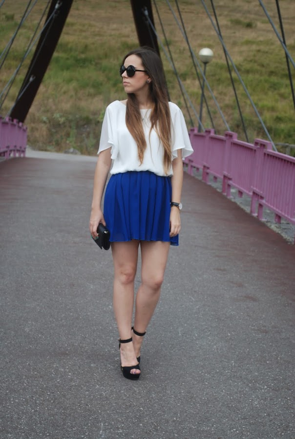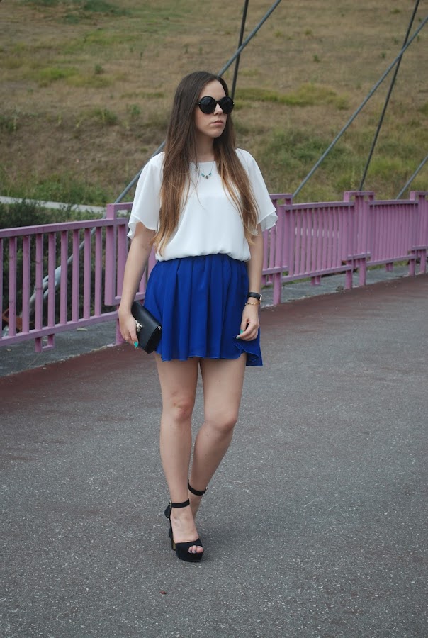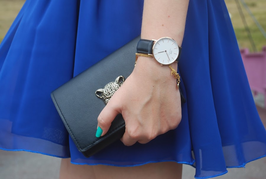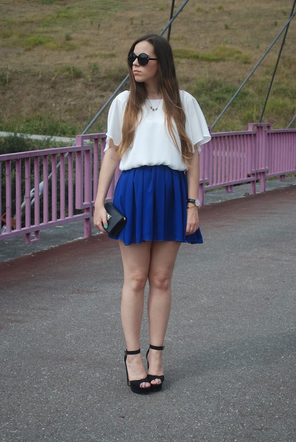 Para acompañarla rescaté mi falda de tul azul y opté por zapatos y bolso en negro. Como complementos mi inseparable Daniel Wellington (os recuerdo que hasta el 31 de agosto, usando el código "improvingtheangelDW" tenéis un 15% de descuento en todos sus productos) y uno de mis collares favoritos obra de la señorira Anaïs de Fall in Style (si no la conocéis pasaros por su web aquí y su instagram aquí y enamoraros).