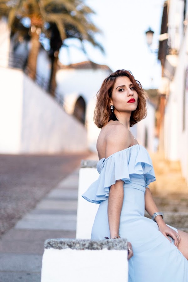 But now that I am here teaching you a new post, it has improved a lot! And I bring you a long dream dress. If you have a wedding this year, EVER PRETTY on your agenda. This dress is one of the most beautiful Ive had in my life, the quality is total and also is just like on the web. The color I have chosen is a blue sky that gives enough light and what I like most is the shape of the neckline with bare shoulders. Also, I love the opening that has on the side that makes the legs super long!