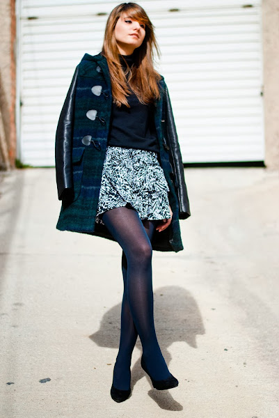 Some days ago I showed you a beautiful collection of tights from "Dorian Gray"...this saturday (when the sun shined) I decided wear these blue tights! Only can say that are fantastic!! The rest of my look is simple, skirt, black sweater and this coat that I bought some weeks ago in sales!