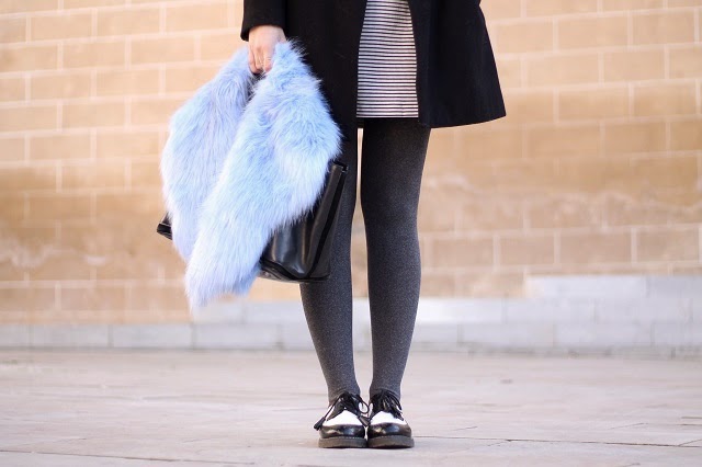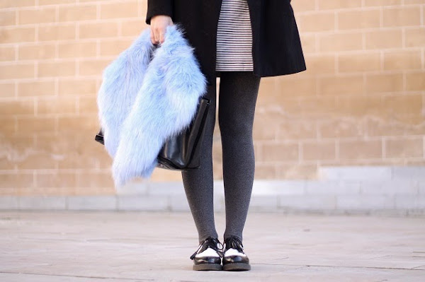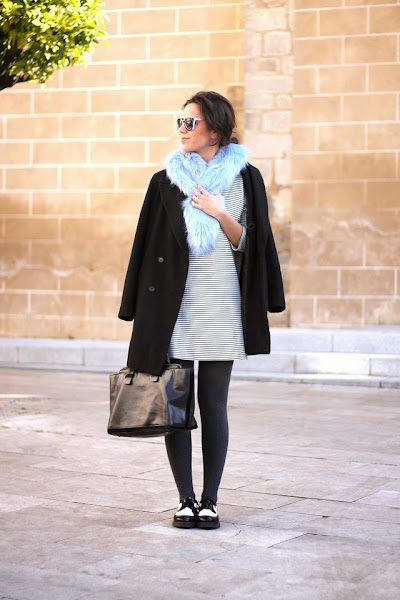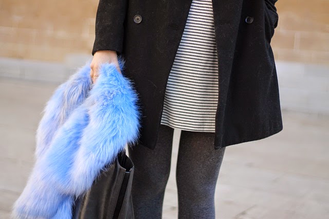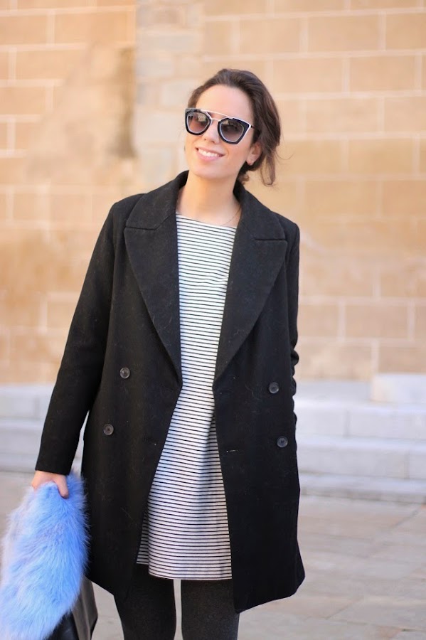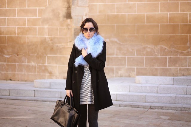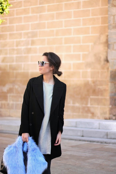 Me veía un poquito sosa con el abrigo negro sólo, así que el cuello de pelo azul fue perfecto para además ayudar a dar ese toque de color. Y bueno, nada que añadir de las nuevas gafas de Dorado Vintage, me quedaría con todas pero hay alguien que no me deja jeje.